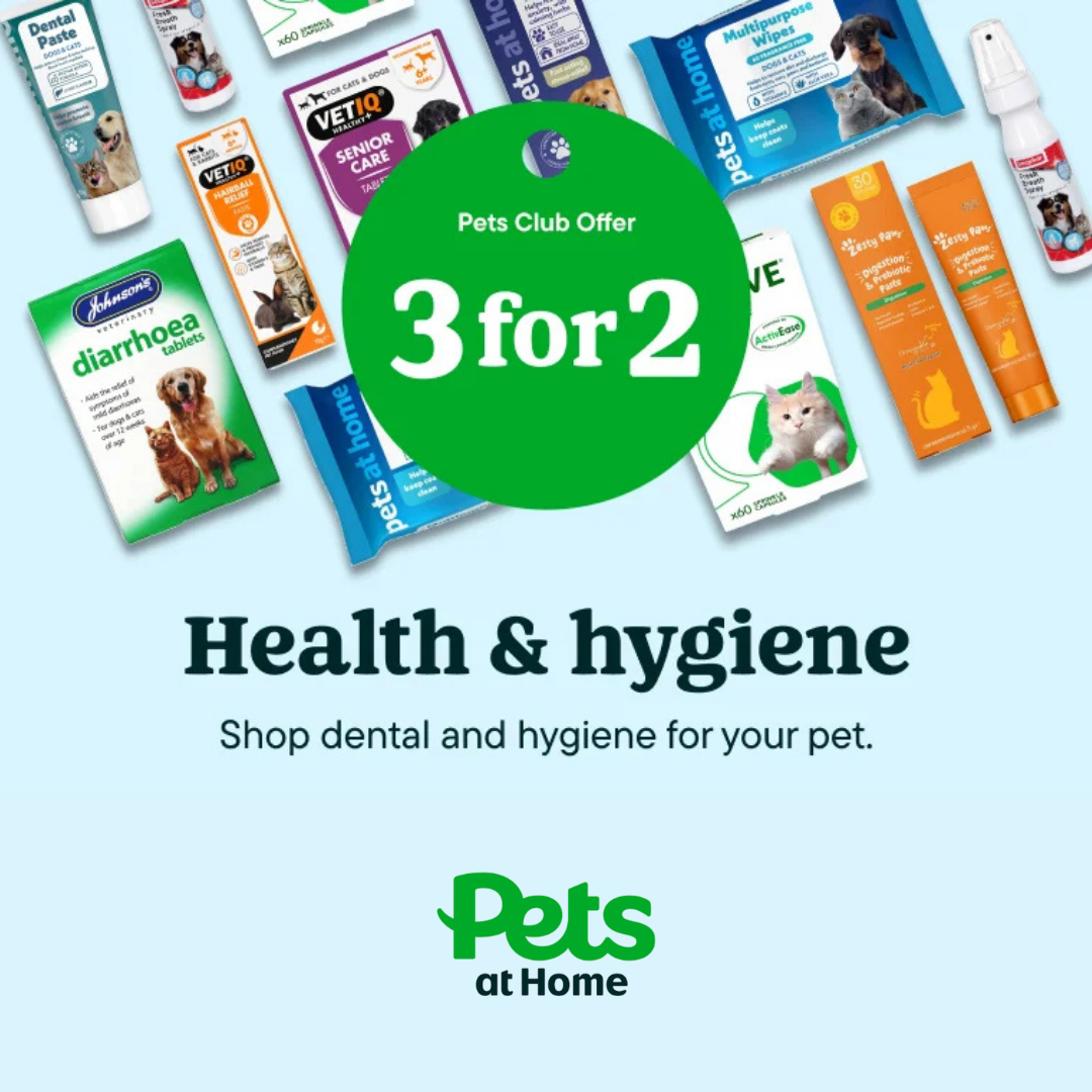 Pets at Home – 3 for 2 on pet health, dental and hygiene.